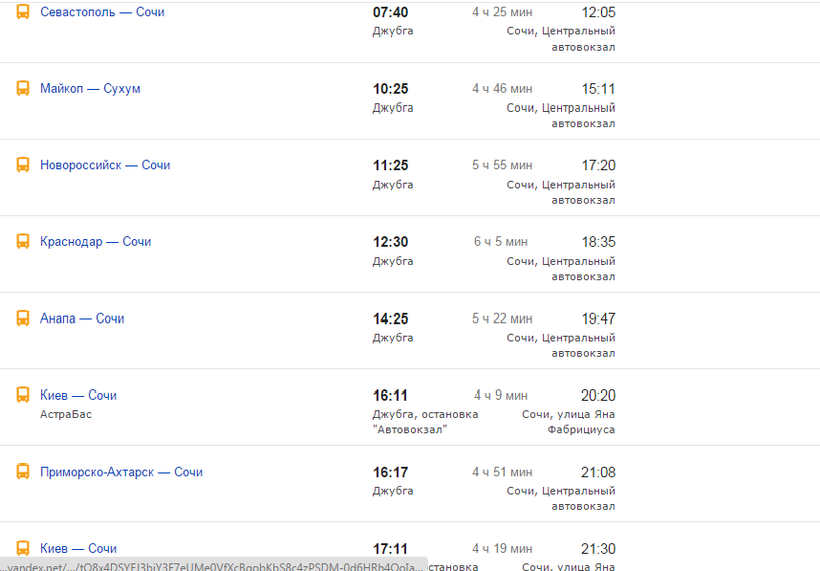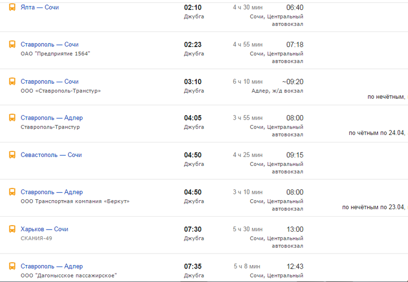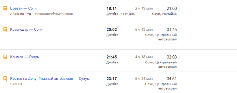 Очень удобно из Джубги добираться до Адлера на автобусе, потому что рейсов много, а ходят они круглосуточно. Привожу ниже примерное расписание, чтобы удобнее было спланировать свою поездку.