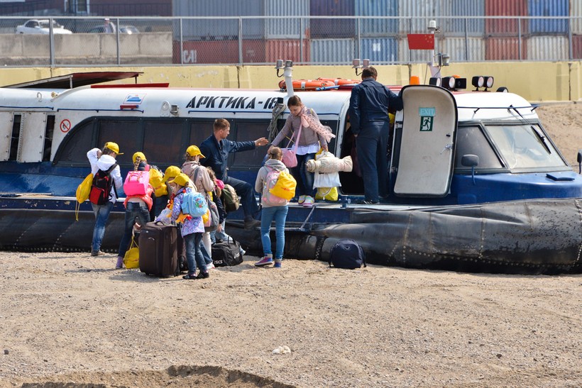 В период ледостава (ноябрь, декабрь, апрель) пассажиров переправляют небольшие катера «Пума» на воздушной подушке.
