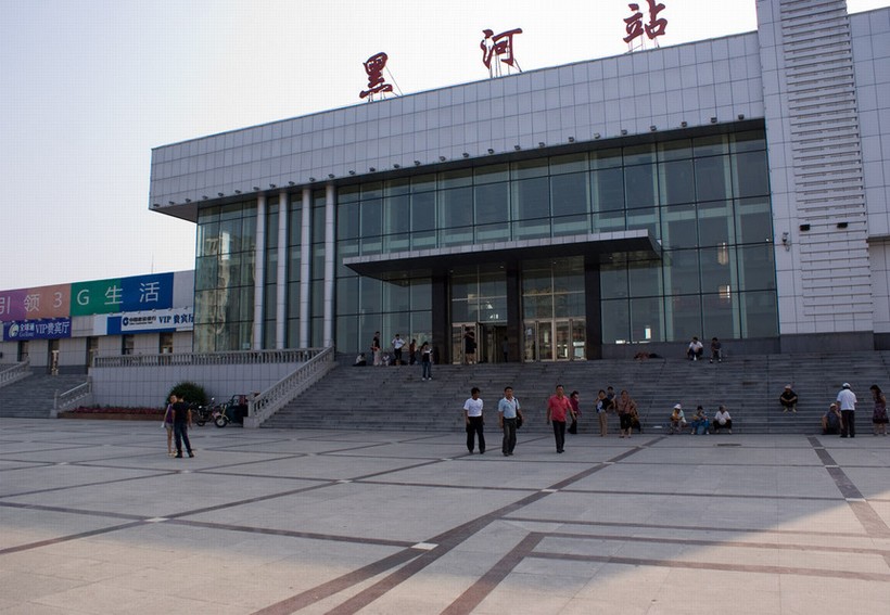 От речного порта до железнодорожного вокзала Хэйхэ приличное расстояние и пешком вы не дойдете, поэтому придется воспользоваться такси (100 рублей/10 юаней). На вокзале вам сразу нужно занять очередь к кассе и сделать это сложно, так как будет впечатление, что в зале вокзала собрался весь Китай.