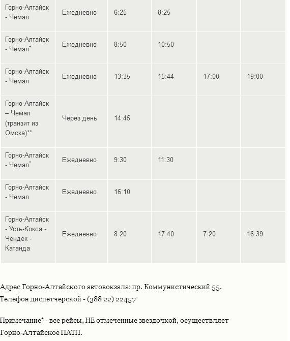 Ниже приведена информация о том, сколько часов вам потребуется, чтобы добраться от Горно-Алтайска до Чемала, а также приведена примерная стоимость проезда (средняя цена билета) на том или ином виде транспорта.