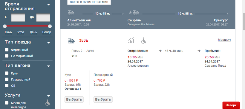 До Сызрани – 760 рублей, а до конечного пункта 1110.