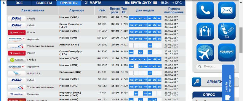 Итак, есть по несколько (в сезон и по 5-6) рейсов: