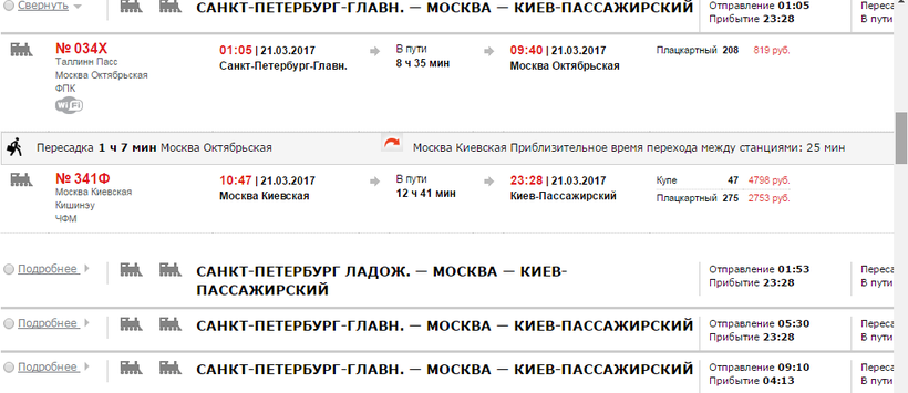 До Киева ехать почти 13 часов и должна подметить, что это не так уж много , да и рейсов будет тоже предостаточно. Кстати, можно также от Петербурга доехать до Казатина (1 день в пути) или до Винницы (1 день 2 часа), а потом от этих городов до Киева. В принципе, здесь по времени получается одинаково, если учитывать, что до Москвы ехать 4-9 часов.