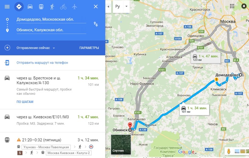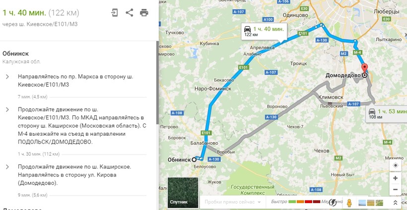 Самый короткий путь будет, если ехать по Калужскому шоссе через Подольск. Расстояние 100 км. Время в пути без пробок составит полтора часа. Дорога хорошая, но много камер и часто проезжаешь поселки, где ограничение по скорости 60 км/ч, будьте внимательнее.