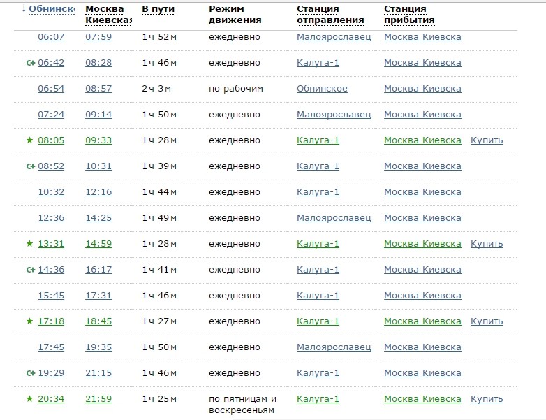 Прямых железнодорожных рейсов Обнинск – Домодедово нет, необходимо добираться с пересадками. Сначала нужно доехать до Москвы. От станции Обнинск регулярно отправляются электрички. Первая электричка отходит в 4:06 утра, последняя в 22:31. Экспрессы ездят примерно раз в 3 часа, в расписание они отмечены зеленым цветом. На электричке время в пути составит в среднем 1 час 40 минут, на экспрессе 1 час 25 минут.