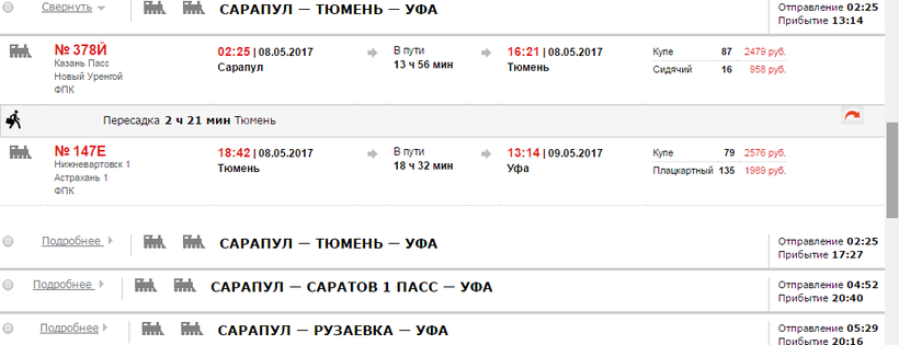 Этот вариант можно забыть или оставить просто в качестве запасного. Дело в том, что напрямую в Уфу не добраться, а ехать с пересадкой неудобно, ведь на дорогу уйдут почти сутки. В качестве перевалочного пункта можно выбрать один из городов: