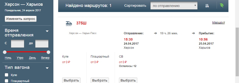 А теперь самое главное, оказавшись в Херсоне, вам надо топать на железнодорожный вокзал, который находится рядом с автостанцией, если не хотите пешком идти, то тогда возьмите такси. Буквально ежедневно есть рейс по направлению Херсон – Харьков, который отправляется в 15:30. Дорога занимает 19 часов 30 минут.