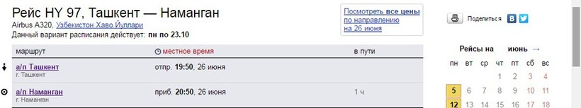 Авиабилеты Ташкент – Наманган