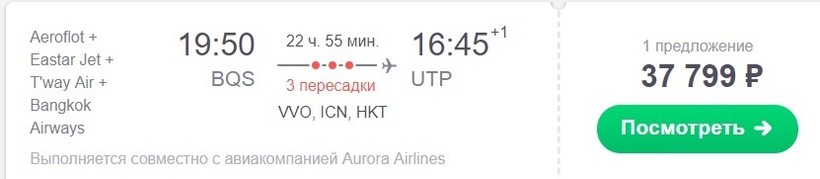 Также вы можете полететь с тремя пересадками и потратить на дорогу 23 часа. Вот один из вариантов.