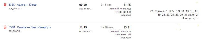 Остальные составы ходят с вокзала "Арзамас-1".