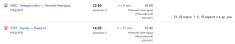 Ж/Д билеты Арзамас – Павлово