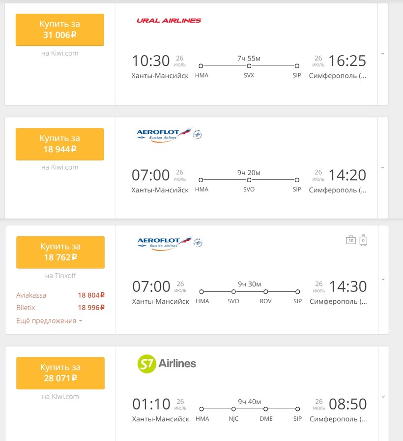 Я всегда ищу проездные документы на самолет на каком-то интернет сервисе, большинство из них похожие на этот, так что найти дешевый билет можно без проблем. Также не лишним будет заглянуть на сайты компаний «Аэрофлот», «Уральские авиалинии» и S7.