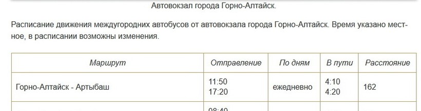 Как и на личном автомобиле, дорога занимает около 2,5 часов. Хороший вариант, чтобы доехать до Артыбаша быстро и с комфортом. Стоимость проезда 3000 рублей.