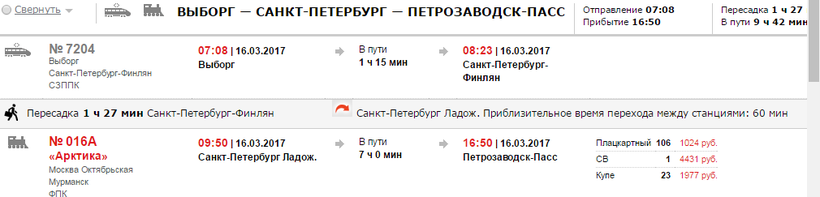 Цена билета до Питера около 300 рублей, а до Петрозаводска 800.