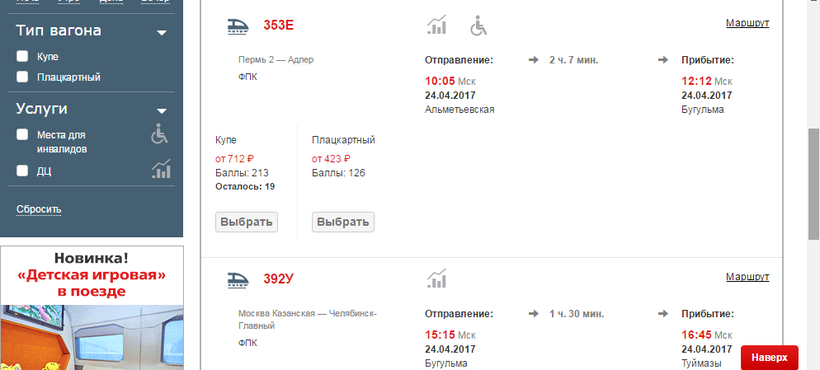Этот вариант был бы хорош, если бы не редкие рейсы. Меня бы даже не расстроило то, что ехать надо с пересадкой в Бугульме, но вот частота рейсов приводит в уныние. Один раз в день от железнодорожной станции Альметьевская отправляется состав до Бугульмы в 10:05. Ехать до нее чуть больше 2 часов.