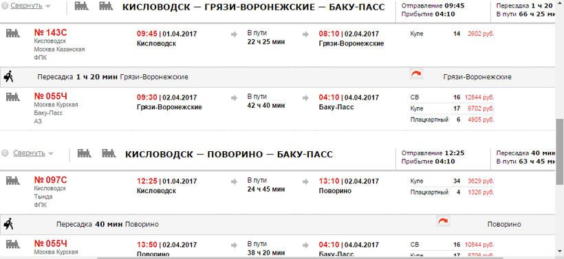 Как видите, второй рейс будет как раз-таки до Поворино, здесь разница во времени минимальная, ехать до станции 1 день 1 час, а вот до конечного пункта еще 1 день 15 часов. Долгую дорогу можно перетерпеть, если условия хорошие, но поскольку я уже испытала на себе все прелести вагонной романтики, то могу сказать, что составы ходят до Баку просто ужасные. И это касается не только плацкартных вагонов, но и купейных.