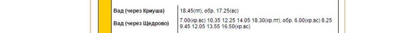 Регулярно по этому маршруту ходит 5 автобусов с 07:00 до 18:45, а их расписание я привожу ниже.