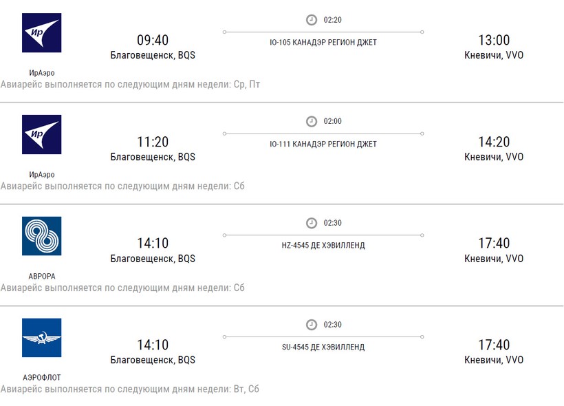 Прямых рейсов в Уссурийск из аэропорта Благовещенска нет, однако вы можете приобрести билет на самолет до Владивостока. Время полета составит всего 2-2,5 часа, но будьте готовы к тому, что вылеты происходят не каждый день.