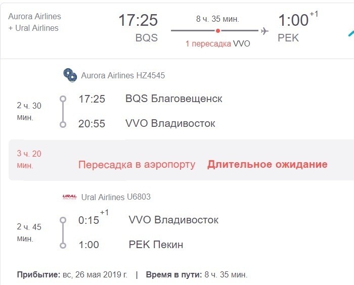 Благовещенский аэровокзал «Игнатьево» располагается примерно в пятнадцати километрах от центральной части города. Прямые самолеты из данной воздушной гавани в Пекин не летают. До столицы Китая можно добраться только с пересадкой. Ее оптимальнее всего сделать именно во Владивостоке. Вот один из вариантов.
