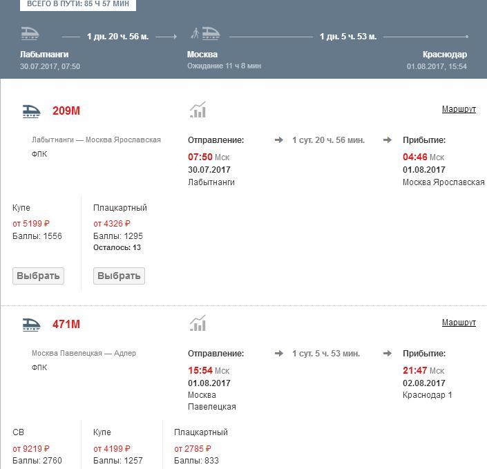 Ниже приведена информация о том, сколько часов вам потребуется, чтобы добраться от Салехарда до Краснодара, а также приведена примерная стоимость проезда (средняя цена билета) на том или ином виде транспорта.
