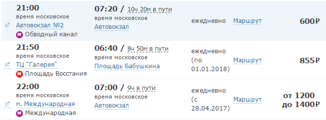 Стоимость проезда и время в пути