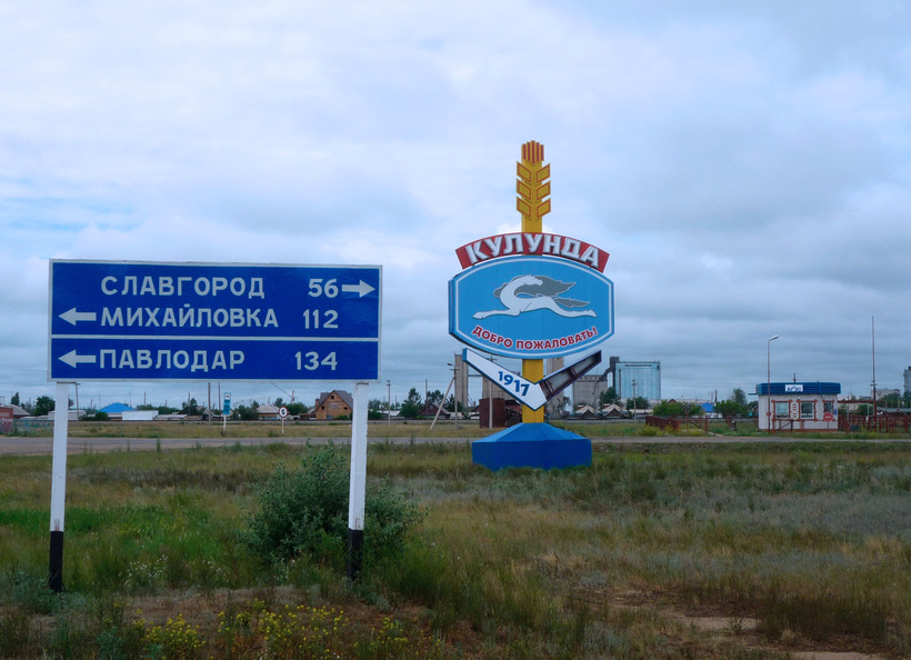 От Белокурихи до райцентра Петропавловское дорога петляет по отрогам Чергинского хребта. Когда поднимаешься на небольшие перевалы, открывается живописные виды на Бийскую равнину. От Петропавловского до райцентра Усть-Калманка состояние дороги оставляет желать лучшего. В Усть-Калманском районе предгорья заканчиваются, трасса идет по равнинной местности. Небольшой город Алейск проходим по объездной дороге и движемся в сторону Буканского. Здесь встречаются участки дороги очень плохого качества. Единственный плюс – небольшой трафик, машин мало. Проезжаем Мамонтовский, Романовский, Родинский районы. Поток машин увеличивается, ведь трасса Р 371 соединяет Алтайский край с Казахстаном. В Родино мы отклонились от маршрута, проложенного картой Google и поехали не напрямую в Кулунду, а сделали крюк через райцентр Благовещенка. Дело в том, что раньше между Кулундой и Родино встречались участки с гравийным покрытием, и у нас остались печальные воспоминания об их преодолении. Зато между Благовещенкой и Кулундой мы проезжали поселок с громким названием Орлеан. Когда по дороге особых достопримечательностей не наблюдается, остается удивляться необычным названиям сел. В этих районах местность степная, растительности немного, пейзаж довольно однообразный, оживляется разве только полями подсолнечника да гречихи. Проехали большое село Кулунда, которое раньше было поселком городского типа.
