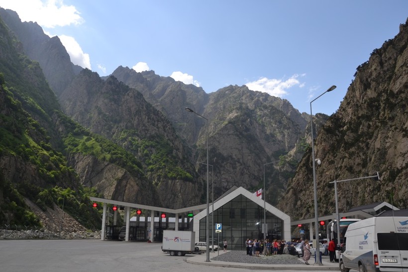 На этом же вокзале надо пересесть на автобус, который идет до пограничного перехода, а находится он в Верхнем Ларсе. Справедливости ради стоит отметить, что это единственный в своем роде переход между двумя государствами. Водитель довозит до границы, где всем пассажирам надо выходить и становиться в очередь за попуткой. Понимаю, что такой расклад может напугать и даже оттолкнуть, но поверьте, что в 99% процентах останавливается водитель, который подбирает попутчика, чтобы провести его через границу, а пешком ее пересекать категорически запрещено.