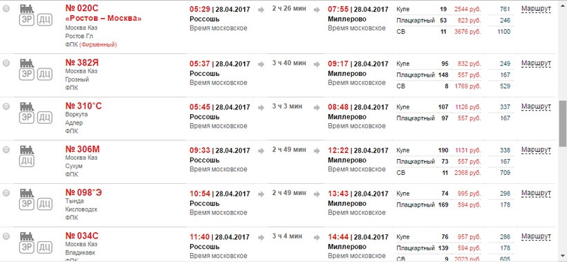 Ж/Д билеты Россошь – Миллерово
