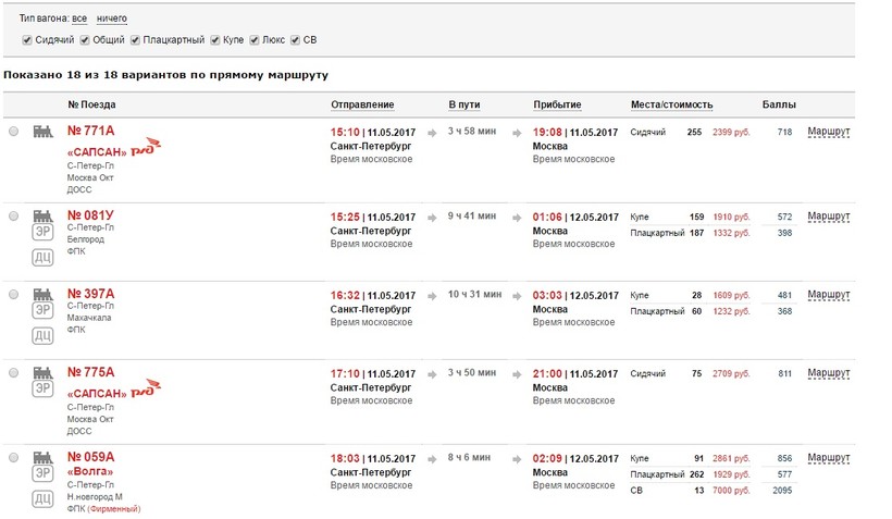 За билет для одного человека в эконом класс придётся заплатить около 18000 рублей.