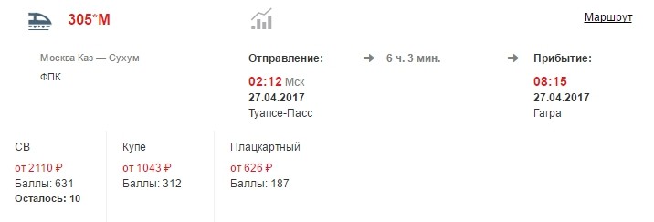 Несколько раз в неделю через Туапсе и Гагры проходит пассажирский поезд 305М Москва Каз - Сухум.