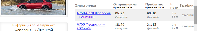 Если вы были внимательными, то запомнили, что сесть надо на утренний рейс из Феодосии, тогда будет предостаточно времени, чтобы успеть на дневную электричку и к вечеру прибыть в пункт назначения.