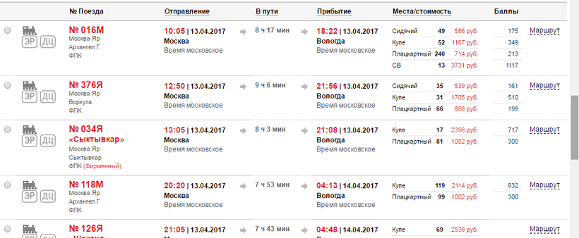 - Билет на поезд до Москвы обойдется в 1750 рублей, а до Вологды в 540.