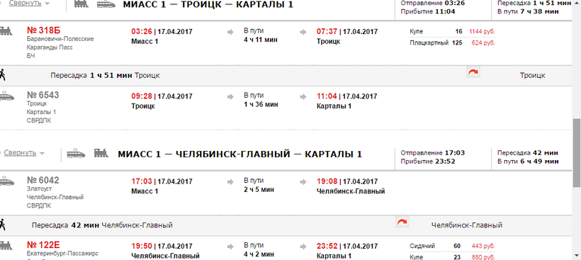 - Билет на поезд в Карталы стоит 575 рублей.