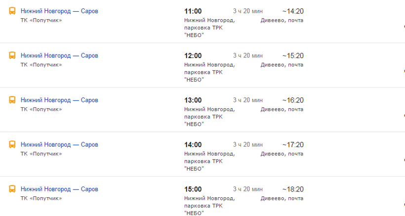 Если вы не успеваете на этот рейс, не отчаивайтесь, а садитесь прямо на этом автовокзале на любой транспорт, следующий до площади Лядова, с парковки ТРК комплекса «Небо» практически каждый час отправляются маршрутки в сторону Сарова, которые тоже берут пассажиров до Дивеева. От Нижнего Новгорода до нужной нам остановки предстоит добираться часа 3.