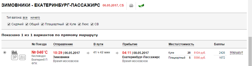 Ну а теперь самое главное. Будет несколько пересадок, так как крайне сложно преодолеть почти 6 тысяч километров на одном поезде. Если сесть на автобус в 3 ночи, то в 6 вы будете в Зимовниках, останется подождать 3 с лишним часа до отправления поезда в 10:29 в Екатеринбург. Курсирует он несколько раз в неделю (уточните на вокзале). Дорога занимает без 6 часов 2 дня. По правде говоря, ехать было очень тяжело, так как долго и условия в поезде не самые лучшие.