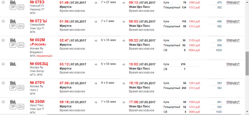 В Улан-Удэ поезд едет еще 7-8 часов, а вот рейсы отправляются от 8 до 10 раз в сутки:
