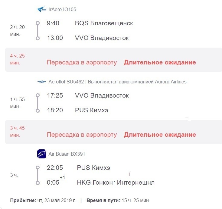 С двумя пересадками до Гонконга можно добраться быстрее. Вот этот вариант. В дороге проведете пятнадцать с половиной часов.