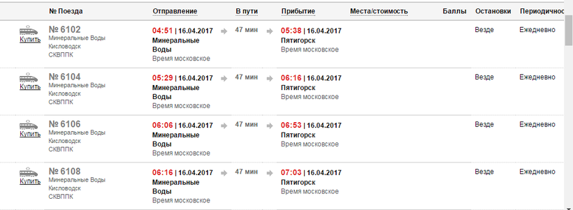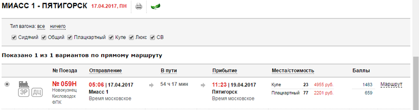 Ниже приведена информация о том, сколько часов вам потребуется, чтобы добраться от Миасса до Пятигорска, а также приведена примерная стоимость проезда (средняя цена билета) на том или ином виде транспорта.