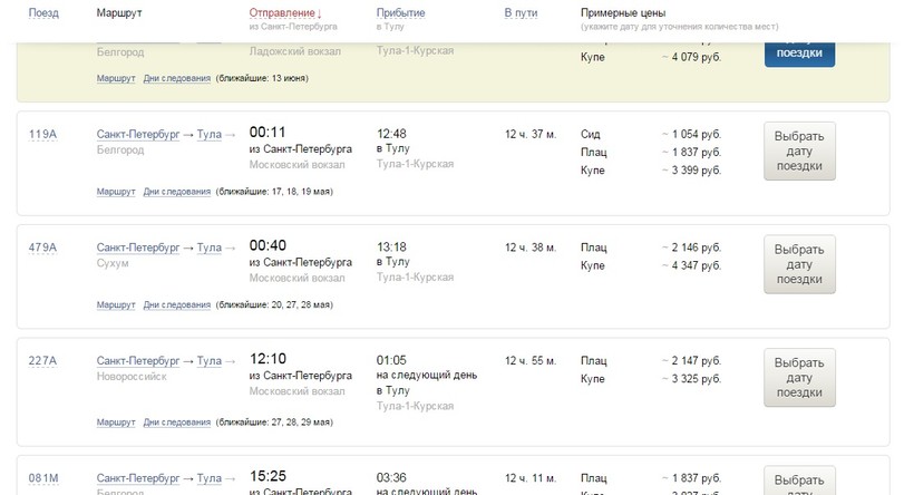 Последним рассмотренным мной вариантом является поездка на поезде. Добираться нужно будет от Санкт-Петербурга до Тулы, а затем придется воспользоваться предложенным выше расписанием автобусов до Ясной Поляны. Что касается поезда, есть два варианта: купе и плацкарт. Первый предлагает вам все удобства, доступные для передвижения поездом, зато второй, хотя и не является столь же комфортабельным, экономит вам деньги. В новых вагонах работают биотуалеты и кондиционеры.