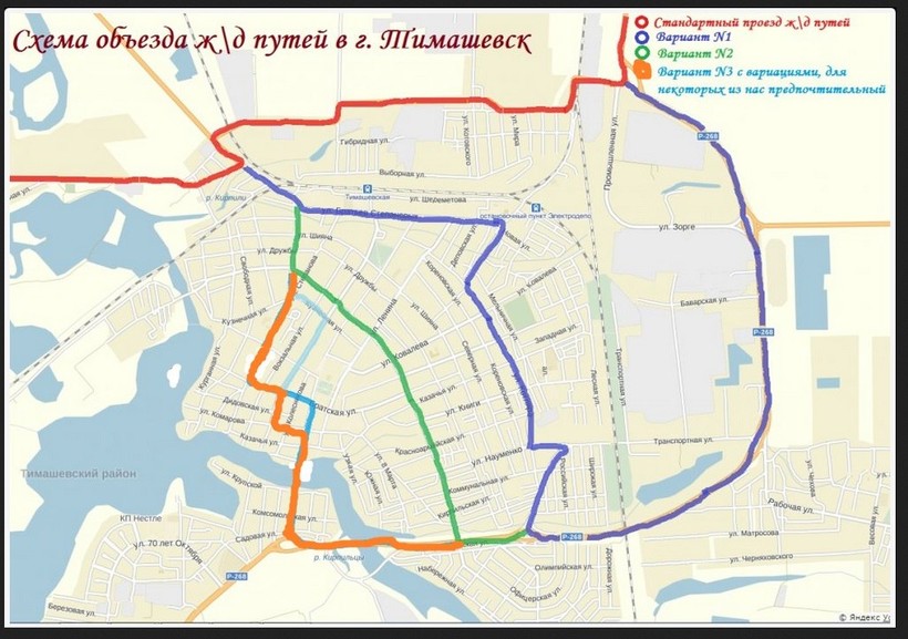 Обратите внимание на Тимашевск. В городе находится железнодорожный переезд, работа которого вызывает образование многочасовых пробок. К счастью, стояния в пробке легко избежать. Для этого объездной дороге стоит предпочесть проезд через город. Мы привыкли, что по объездной ехать быстрей, чем через центр. Но это правило действует с точностью до наоборот в данном случае.