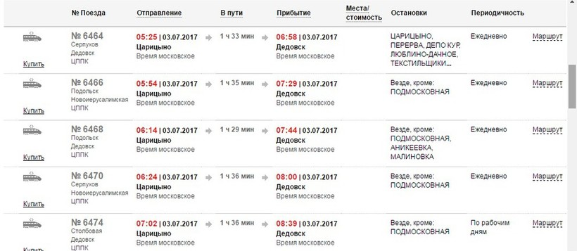 Ж/Д билеты Музей-заповедник Царицыно – Дедовск