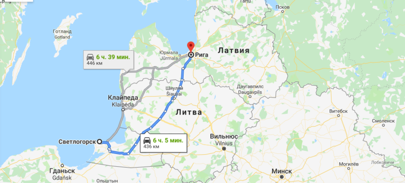 Светлогорск — Рига — маршрут на карте