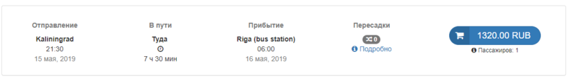 Дальше советую обратиться к официальному порталу международного автобусного перевозчика Ecolines и увидеть, что из Калининграда есть один прямой рейс до Риги.