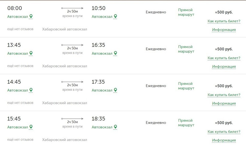 До самого Хабаровска я ехала на автобусе с автовокзала, который находится на Калинина, 4. В дороге провела почти три часа, за билет отдала пятьсот рублей.