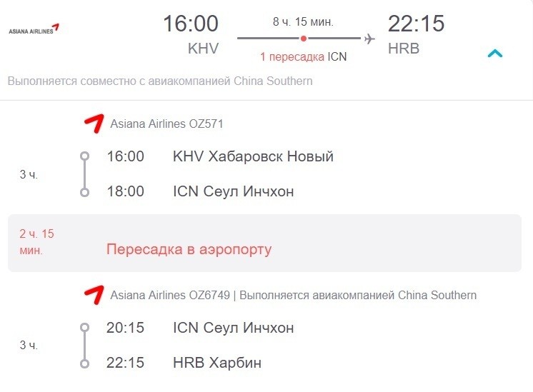 Такое путешествие займет у вас немногим более восьми часов. Перелеты по маршруту выполняют эти авиакомпании: Asiana Airlines и China Southern.