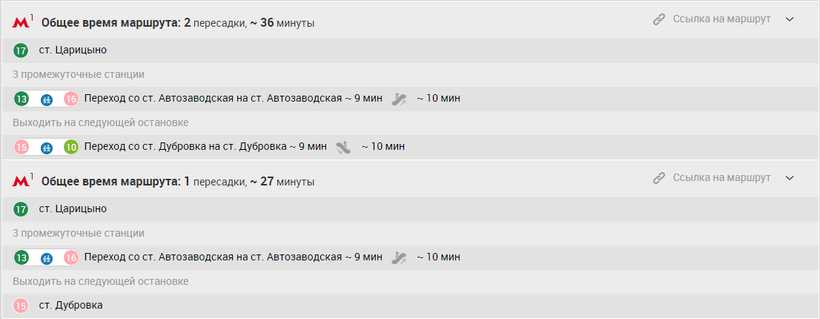 Ниже приведена информация о том, сколько часов вам потребуется, чтобы добраться от Царицыно до Дубровки, а также приведена примерная стоимость проезда (средняя цена билета) на том или ином виде транспорта.