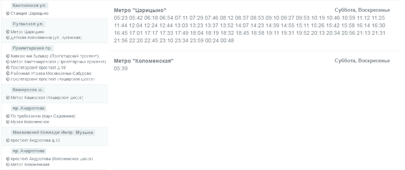 - автобус № 701 (ост. "метро Царицыно" - ост. "метро Коломенская");