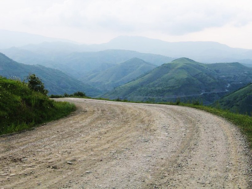Дорога на Кубачи не имеет никакого покрытия, ехать надо по самой обычной, но горной тропе. Конечно, из самого Дербента будет асфальт, но как только доедете до Мамедкала, то он будет постепенно исчезать. Но хочу подметить, что дорога не из глины, а мелкой гальки, что очень хорошо, ведь дождь — не лучший спутник одинокого автомобиля.
