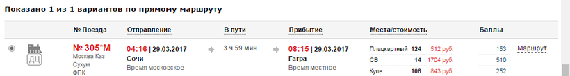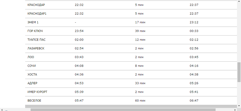Думаю, вы поняли, что поезд делает промежуточную остановку в Хосте, сам поезд из Сочи отправляется в 04:16, а останавливается в Хосте в 04:36.