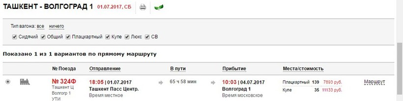 Способ на любителя и выносливого человека, потому что не каждый может несколько дней провести в поезде, да еще и летом, например, поэтому решать вам. Думаю, что вы и сами догадались, что прямых рейсов не найти, однако можно выйти из положения, если купить билетик до Волгограда. Но хочу сразу предостеречь, что каждодневных рейсов нет, и придется заранее бронировать билеты. Если отправка и есть, то один раз в сутки и только в 18:05.